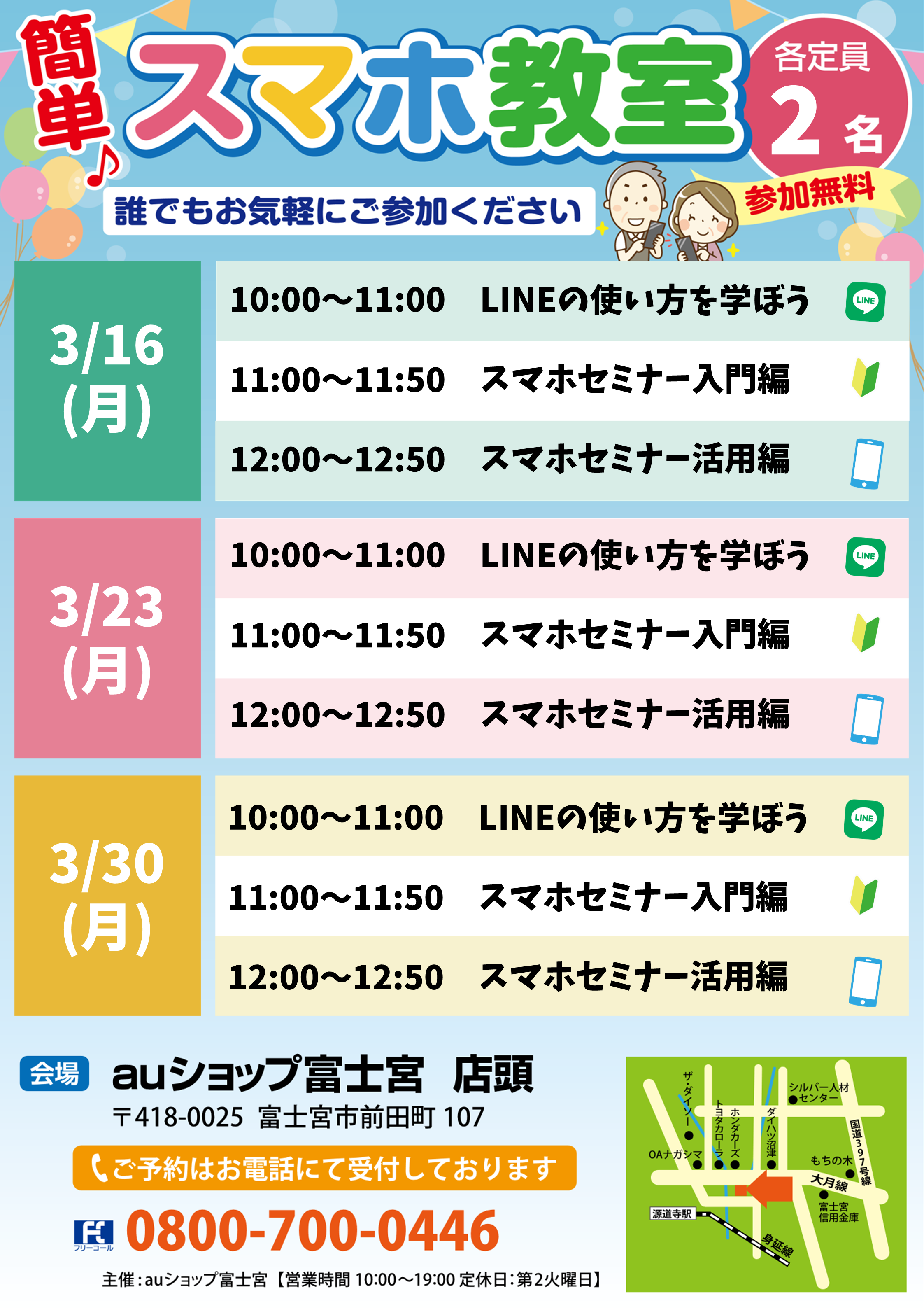 無料で「スマホセミナー」を開催しております。お気軽にお問い合わせください。