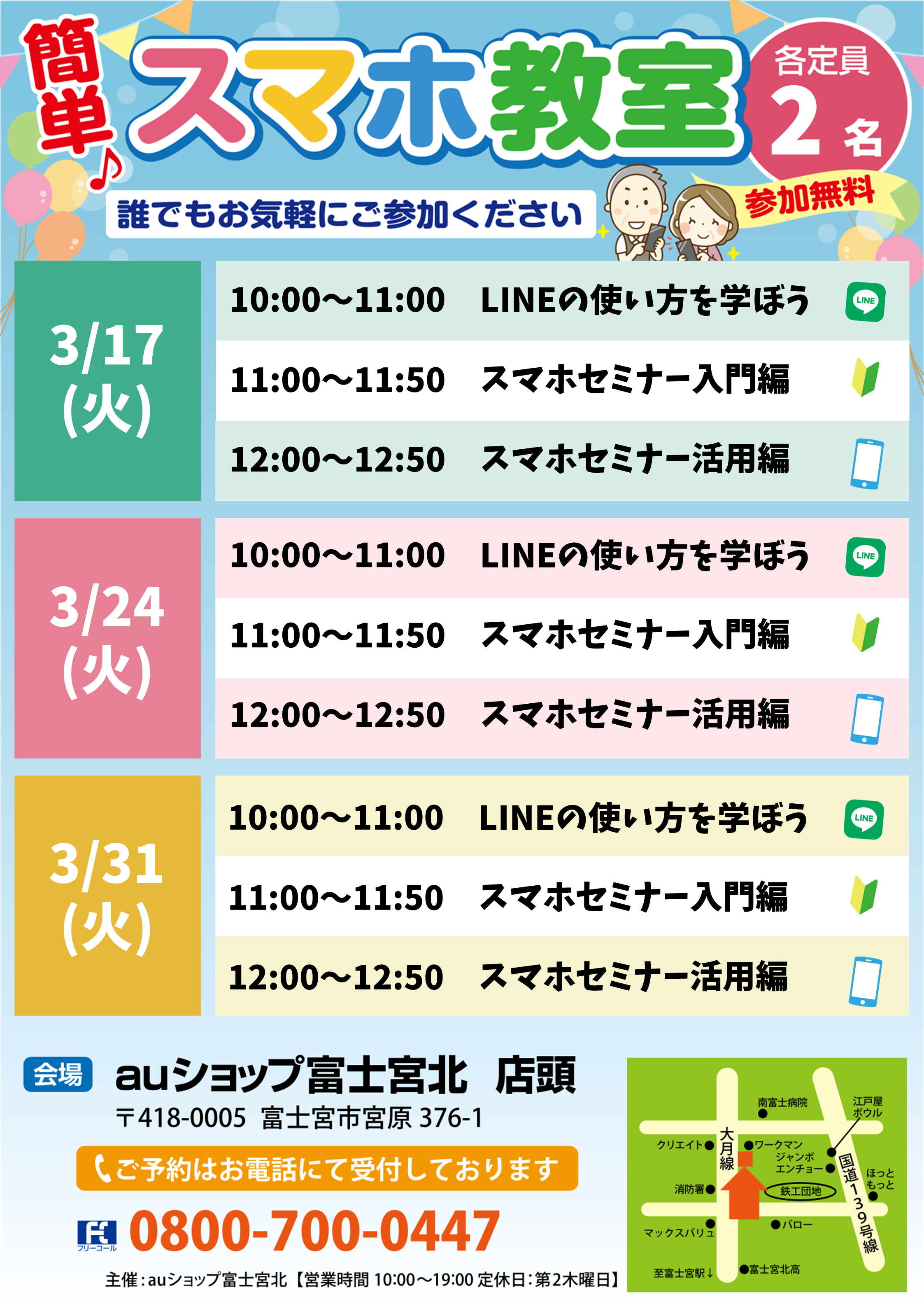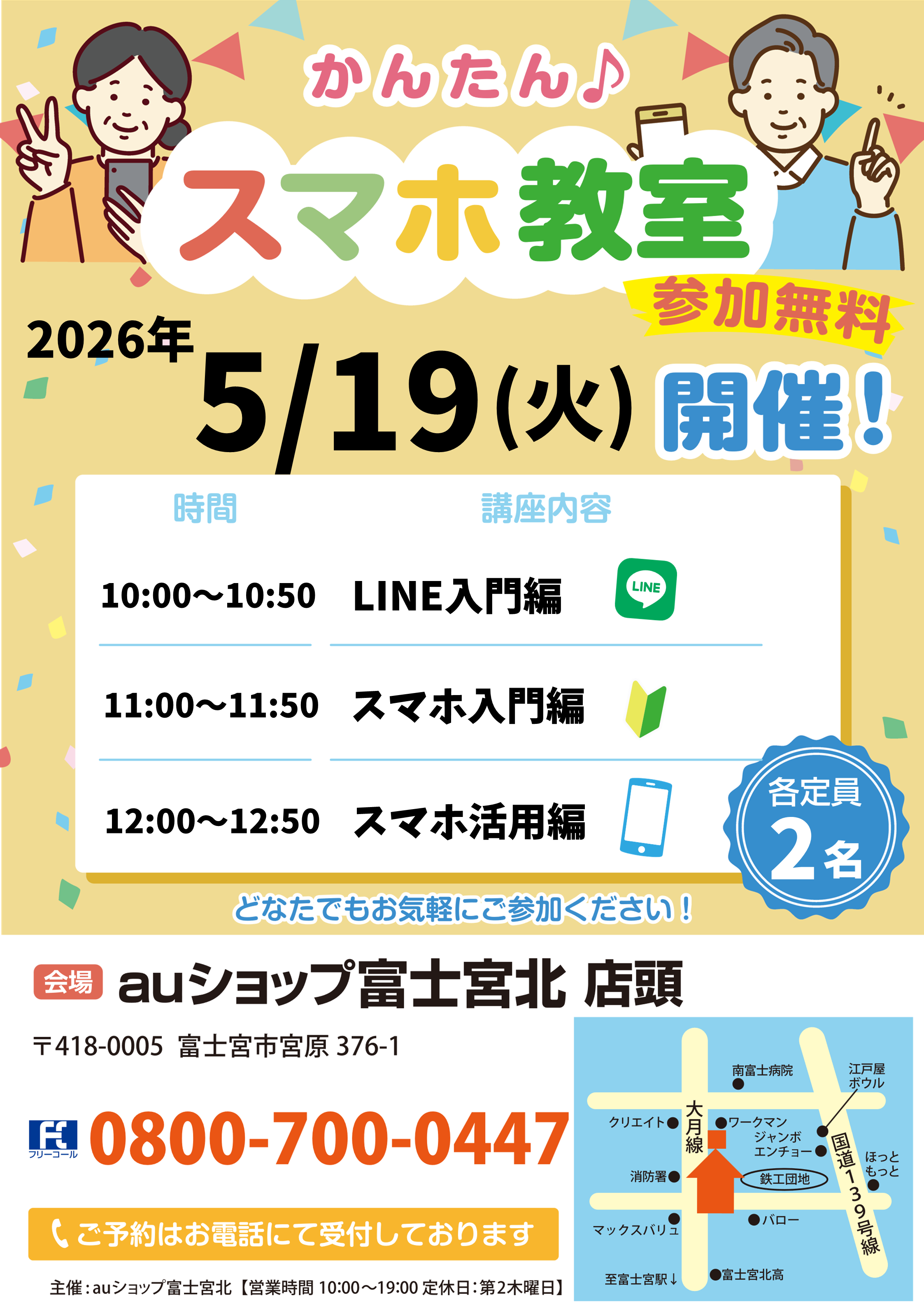 無料で「スマホセミナー」を開催しております。お気軽にお問い合わせください。