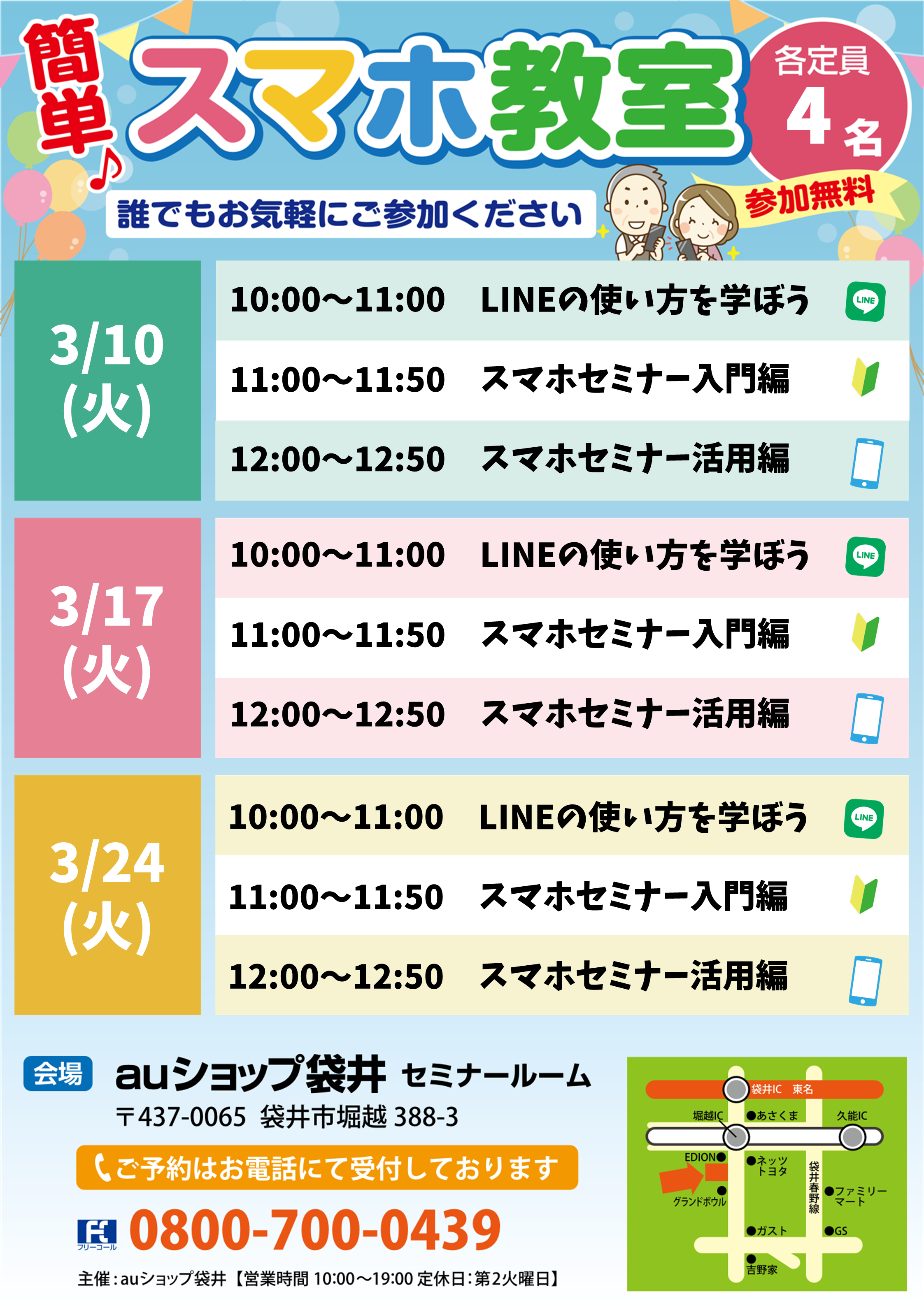 無料で「スマホセミナー」を開催しております。お気軽にお問い合わせください。