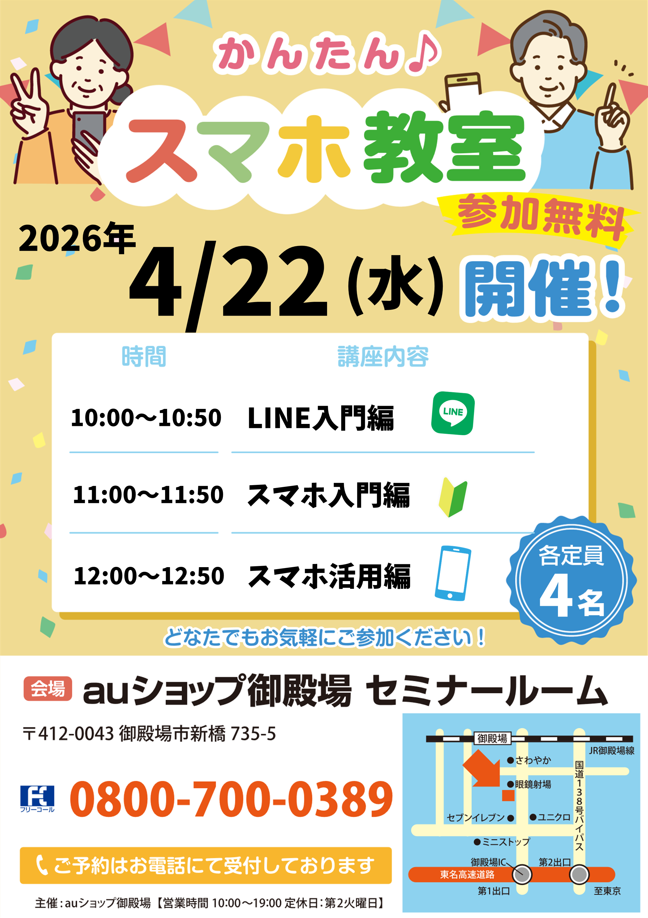 無料で「スマホセミナー」を開催しております。お気軽にお問い合わせください。