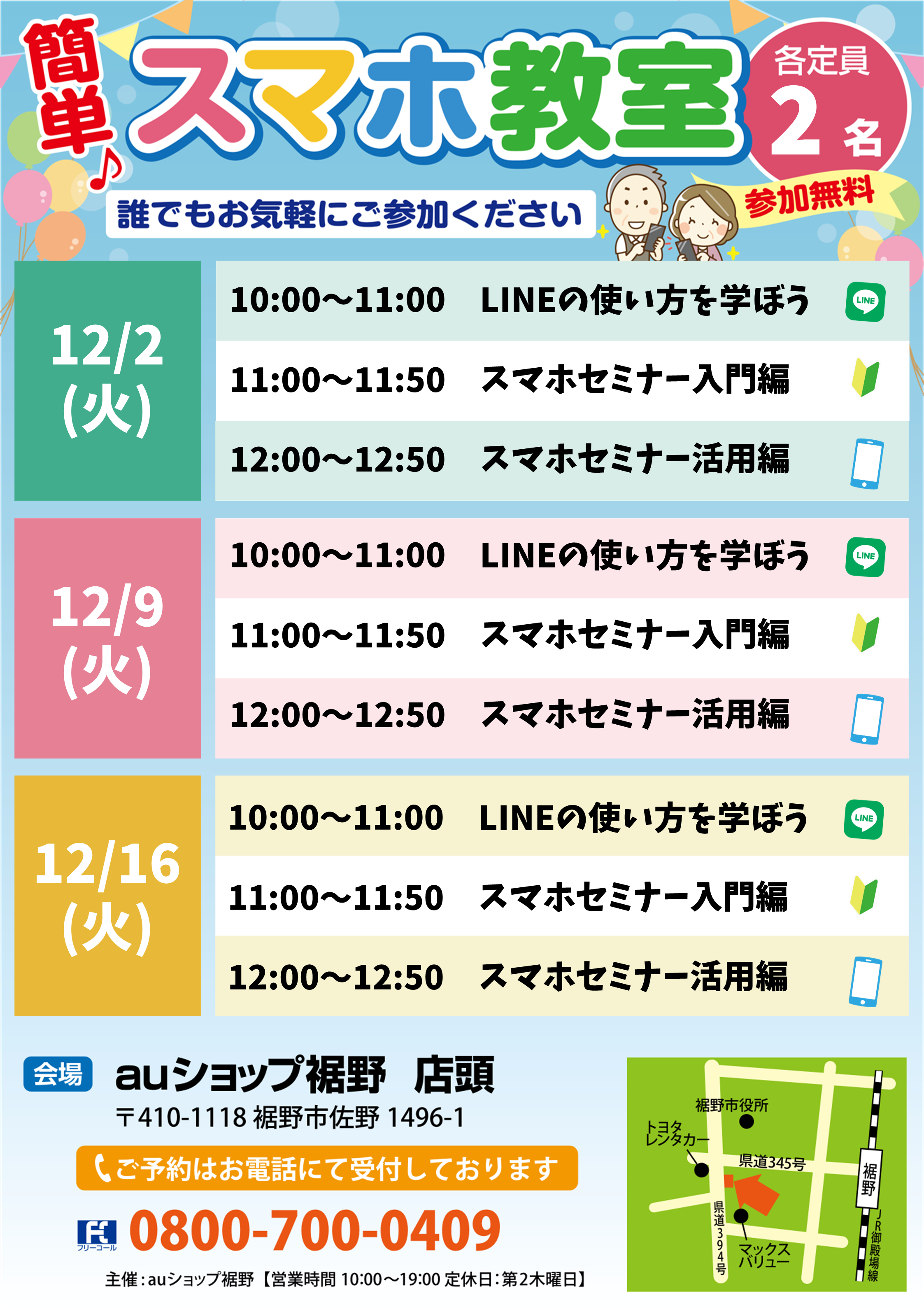 無料で「スマホセミナー」を開催しております。お気軽にお問い合わせください。