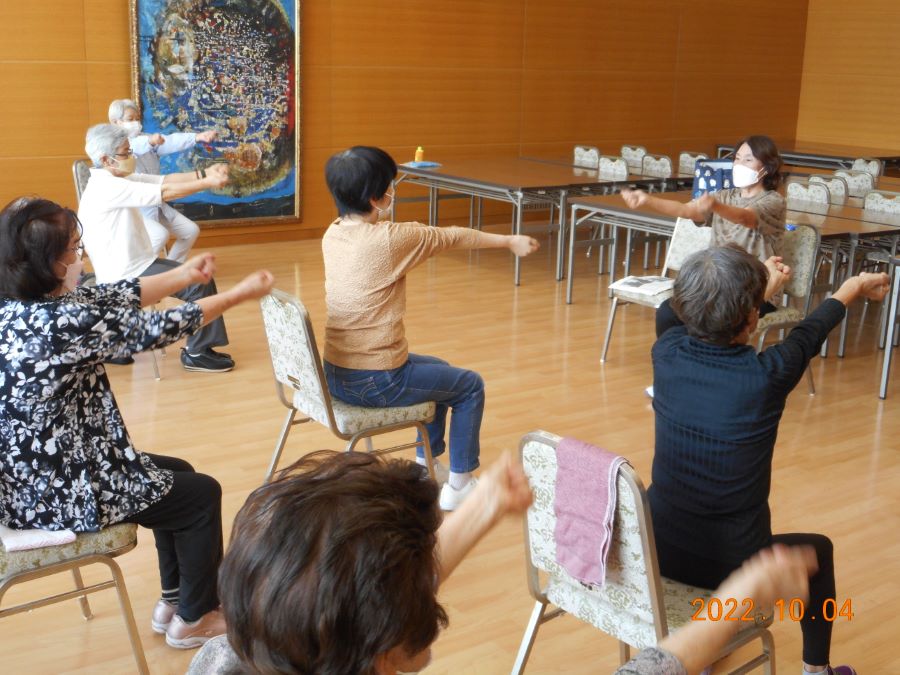 元気で仲良く支えあい、おしゃべり・運動しています。楽しいよ!待ってま~す!